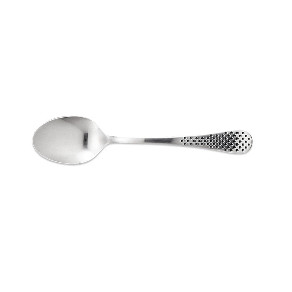 A standard sized teaspoon from Global. Matches other tableware items from Global.