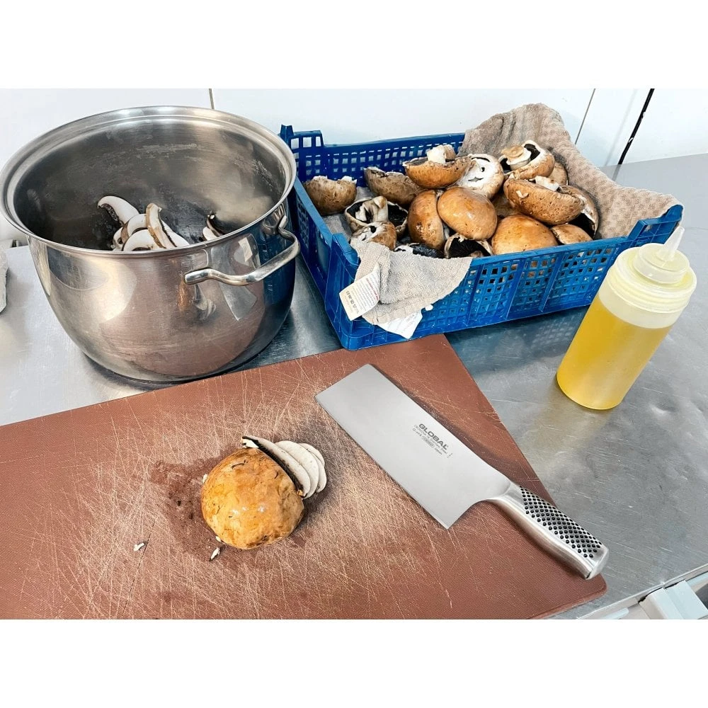 The G-49 17.5cm and the G-50 20cm are both Chinese chef’s knives, whilst they look like cleavers, they are not suitable for this task. These rectangular knives, referred to in Chinese as Caidao are multipurpose knives. Chinese people and chef’s will use these knives in the same way that Western chef’s will use Western style chef’s knives, such as the G-2. These knives will be typically used to prepare all kinds of meat and fish. In fact it is typically the ONLY knife that a Chinese chef will use. Whilst the Chinese chef’s knife resembles a cleaver, it does in fact have a sharp thin blade like a standard G series knife. The G-49 is a typical Chinese Caidao with a 2.2mm thick blade and if used as a cleaver, the blade will usually get damaged. Different parts of the blade are used for different tasks with the front of the blade used for a tapping cutting stroke, the middle and back of the knife for heavier chopping work. Whilst it may seem awkward those skilled with a Chinese blade can use them for any kitchen task.
