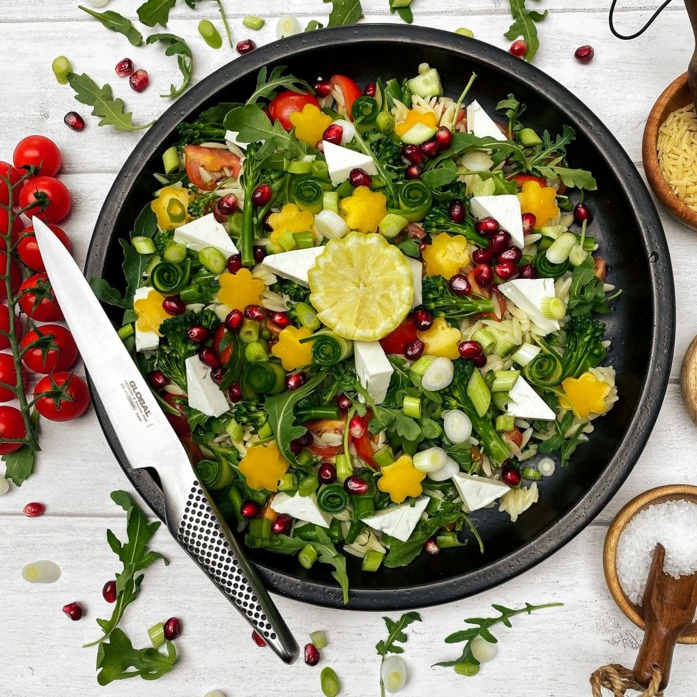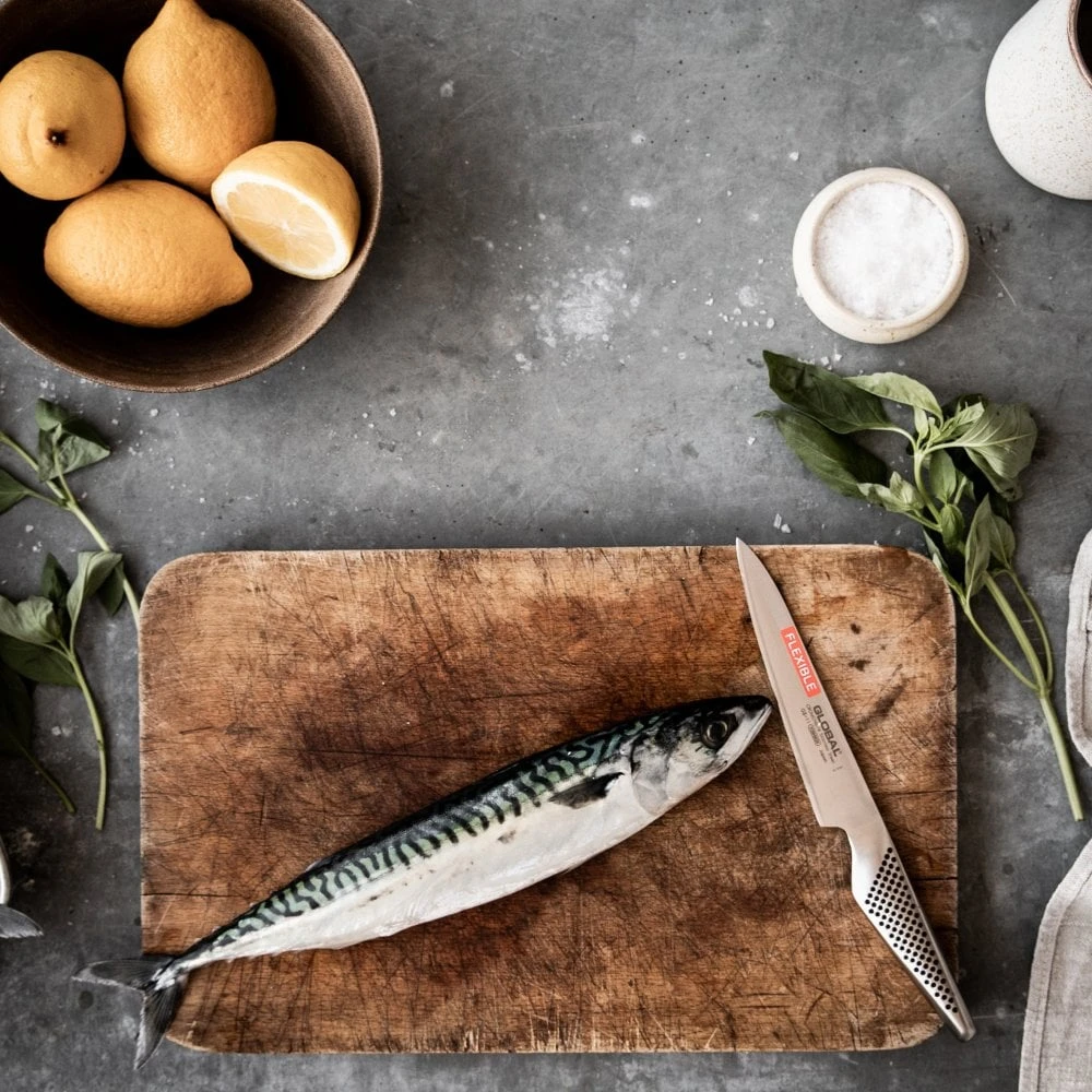 The GS-11 is one of the more popular knives in the Global range and is frequently found in many of the sets where it fills the role of filleting, carving and ‘general purpose’ knife, hence its name. The GS-11 has a medium sized blade at 11cm which is good for filleting small fish such as sea bass. The blade is also flexible which makes it suitable for this purpose. It can also be used as a small carving knife and as it says, utility by name, utility by nature. A fluted version of this knife exists as the GS-36.