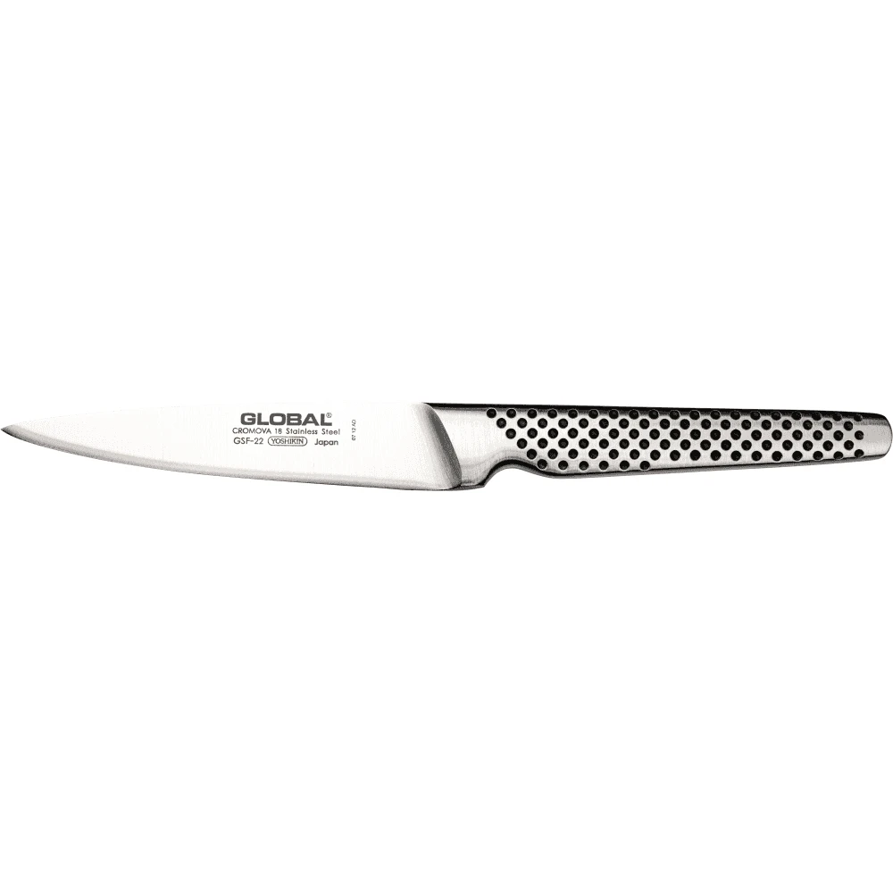 The GSF-15 is the most popular petty knife in the Global range and is very often found in set combinations. Its little 8cm blade is good for all those small kitchen tasks, peeling, cutting fruit and small delicate kitchen work. This knife can cover all the tasks of the other GSF range and is a classic all-rounder.Â
