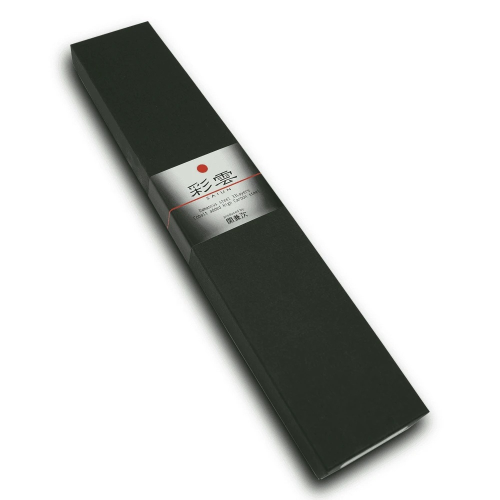 Each Kanetsugu Saiun knife boasts a Damascus blade, featuring a VG10 steel core with 1% carbon content—a highly esteemed alloy in the cutlery realm. This steel’s impressive hardness ensures exceptional cutting prowess and long-lasting sharpness. The core is then encased in 32 layers of a softer steel than VG10, resulting in a blade of 65 layers (32 surrounding the core), visibly represented by the blade’s wavy patterns. The handles are crafted from micarta, a humidity and temperature-resistant material, ensuring kitchen safety.