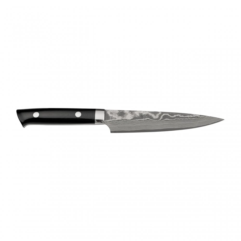 Mastercraftsman Takeshi Saji has been manufacturing knives in Takefu city for nearly 50 years and is considered one of the best traditional smiths in Japan. He creates many custom-designed knives using many different materials and we are delighted to sell some of his production knives. These feature VG-10 cores with Riveted Black Micarta Handles. These knives are sure to look good and work well in the kitchen. As all his knives are handmade, wait times and the stock availability of these items is extremely limited.